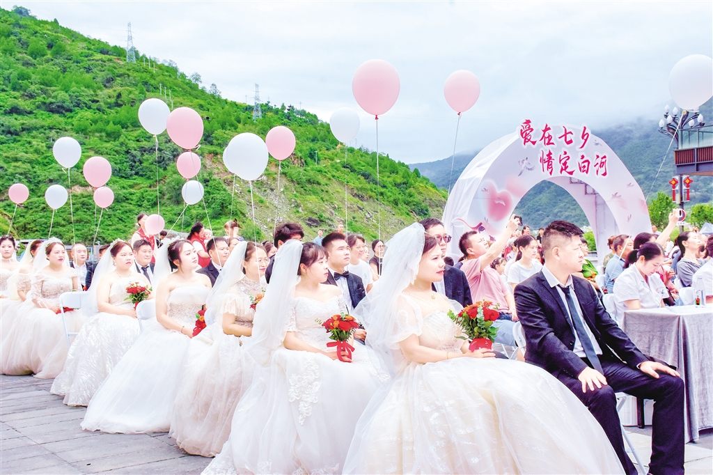 8月29日上午,“愛(ài)在七夕·情定白河”2025年白河縣新時(shí)代文明實(shí)踐集體婚禮主題活動(dòng)在河街寶石文化廣場(chǎng)浪漫啟幕。來(lái)自各行各業(yè)的8對(duì)“珍珠婚”夫婦、8對(duì)新人齊聚一堂,通過(guò)分享婚姻保鮮秘訣、頒發(fā)結(jié)婚證、簽訂承諾書(shū)、開(kāi)展婚姻家庭輔導(dǎo)等簡(jiǎn)約而莊重的儀式,在各界代表和親朋好友的見(jiàn)證祝福下,開(kāi)啟幸福婚姻新篇章,用實(shí)際行動(dòng)踐行婚事新辦、喜事儉辦的文明新風(fēng)尚。(紀(jì)道婭 攝)pQy安康新聞網(wǎng)
