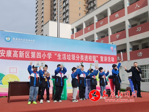 本網訊(通訊員 王宗濤)“同學們,我們是環境保護小天使,我們要讓山更青,水更綠,天更藍,我們生活的家園更美麗!我們應該養成垃圾分類的好習慣。”4月9日上午,春陽燦爛的安康高新區第四小學的操場上,生活垃圾分類“進校園”宣講活動火熱進行中。Qzz安康新聞網