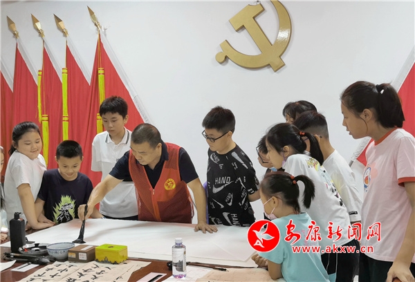 在羅軍書記不辭辛苦耐心指導下,不僅讓孩子們對書法有了初步了解,而且從中體驗到了書法的妙趣,陶冶了情操,現(xiàn)場氣氛其樂融融。