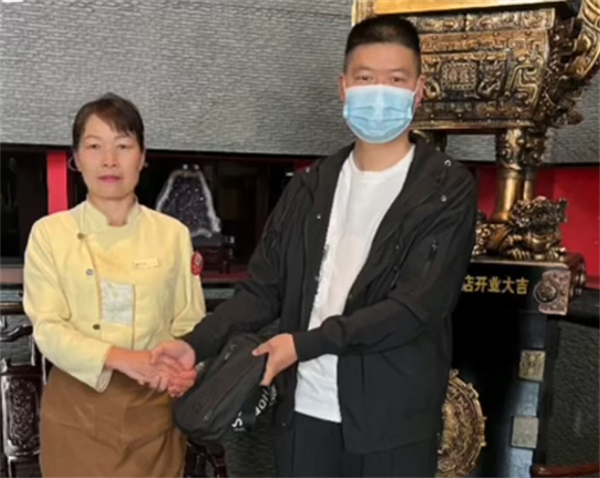 挎包“完璧歸趙”要從4月30日說起。當天,熊先生吃飯后,匆匆離開,隨身攜帶的挎包遺失在安康蓮花餐飲店。挎包內有1萬余元現金,還有駕照、身份證、銀行卡等重要證件。安康蓮花餐飲店服務員趙廣勤和保潔員李佰花發現后,第一時間毫不猶豫地放在餐館的前臺。