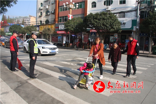 10月30日,該縣公安局20余名志愿者們身穿紅馬甲,手持小紅旗來到無交通信號(hào)燈北城街與解放街十字路口,通過揮動(dòng)小紅旗、文明勸阻等方式,引導(dǎo)過往行人過馬路走斑馬線,提醒過往車輛減速慢行、禮讓行人,幫助老年人、到小孩的婦女、兒童、殘疾人等有困難的群眾安全過馬路,倡導(dǎo)“機(jī)動(dòng)車禮讓斑馬線,機(jī)動(dòng)車按序排隊(duì)通行,機(jī)動(dòng)車有序停放,文明使用車燈,行人、非機(jī)動(dòng)車各行其道,行人、非機(jī)動(dòng)車過街遵守信號(hào)”六大文明交通行為。