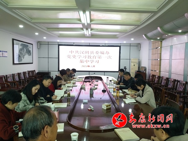 本網訊(通訊員 陳緒艷)3月22日上午,漢陰縣委編辦召開黨史學習教育動員會議,學習貫徹中、省、市、縣黨史學習教育動員大會精神,安排部署黨史學習教育工作,就習近平總書記《論中國共產黨歷史》相關篇目開展了第一次集中學習。