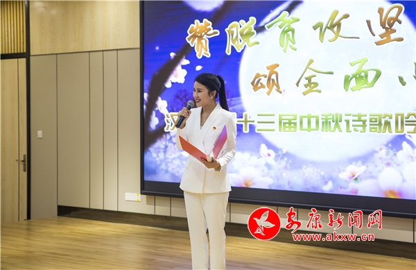 “2021年,中秋月圓。輝映漢陰三山兩川,照亮龍鳳福地的千家萬戶,靚麗大地心愿,同寫共譜新時代藍圖,激情擁抱明天……”伴隨著動聽樂聲,一首首飽含情感的詩歌宛轉悠揚。文學愛好者先后登臺吟誦《大地圓夢 中秋月圓》《梁家河》《創意的三沈文化產業園》《失眠的青年》《月亮的另一面》《漢陰大事狀》《又是一個中秋夜》《中秋月圓 家鄉夢圓》等原創詩作,激情演繹《燈火里的中國》《明月幾時有》《把一切獻給黨》等歌舞表演。一個個精彩的節目讓現場充滿了掌聲歡笑聲,其情美美,其樂融融。活動內容豐富,既有詩歌朗誦,又有歌舞表演和即興作詩,充分展現了漢陰厚重的歷史文化和漢陰人的文化自信,也從側面體現了漢陰文人的創作熱情。