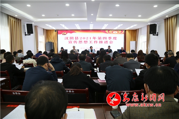 本網訊(通訊員 李敏)10月12日上午,漢陰縣2021年第四季度宣傳思想工作推進會召開。會議對意識形態工作責任制、理論武裝、黨史學習教育、網絡安全、精神文明建設、新聞宣傳、文化產業、文化市場管理、數字經濟等工作進行了安排,部署了宣傳思想重點工作。