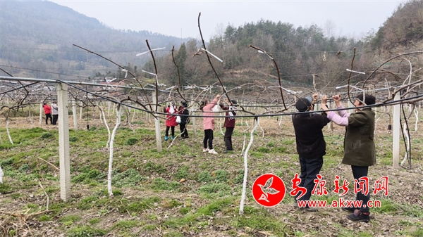 本網訊(通訊員 祝志山)眼下,正值春耕備耕的關鍵時節,獼猴桃迎來了春梢生長發育的關鍵時期,漢陰縣觀音河鎮的2800余畝獼猴桃園內,數位工人和果農正搶抓農時剪枝綁蔓,抓好春梢管理,為后期促花壯蕾、保花保果、提質增產打下良好基礎。