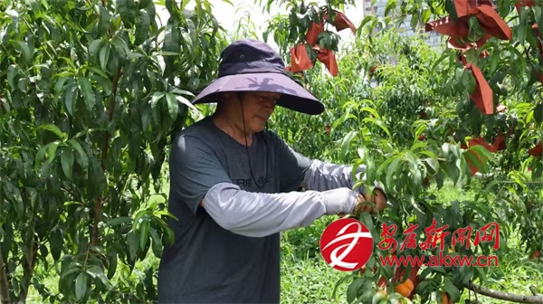 同樣迎來收獲的還有城關鎮的黃桃,在城關鎮龍嶺村的黃桃種植基地,連片的桃樹郁郁蔥蔥,金燦燦的黃桃壓彎了枝條,空氣中彌漫著誘人的桃香。基地負責人劉宏正忙著采摘,臉上洋溢著燦爛的笑容,他一邊采摘一邊介紹道:“我們這個桃園有金鳳黃桃、黃金黃桃、秋彤桃和冬桃四個品種,一共有9畝多,從6月中旬到10月左右,陸續都有成熟的桃子。”
