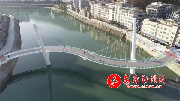 無人機拍攝的剛建成的嵐皋縣城嵐河人行橋。陳延安/攝3eZ安康新聞網