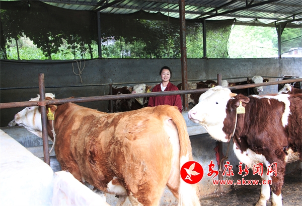 陳景田吃苦耐勞,熱情爽朗。19歲時,她離開家鄉外出打工,學過理發,洗過碗,端過盤子,之后又回到嵐皋縣城賣床上用品。網購興起后,產品不好賣了。2014年初,陳景田和丈夫一合計,干脆拿著做生意攢下的幾十萬開始修圈舍、修路、架電、修廠房,買下村民的12頭牛,正式開啟了她的“牛姐征程”。