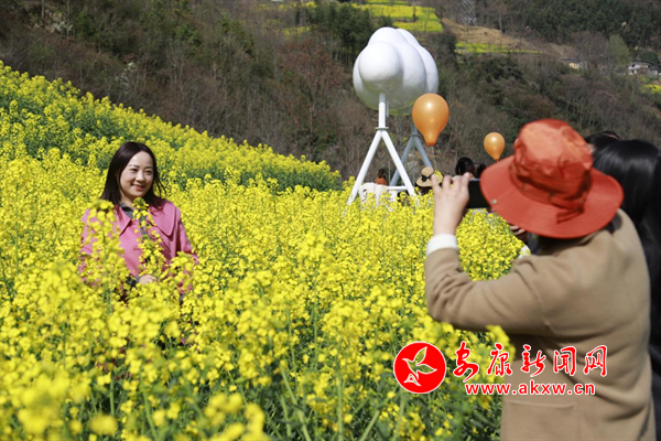 陽春三月,嵐皋縣城關鎮水田村1000畝繁茂的油菜花海,為大地迅速披上一層金色的盛裝,吸引眾多的游客紛紛前來觀光旅游,分享陽春三月、鳥語花香的鄉間美麗景色。(攝影 廖霖) 5mE安康新聞網