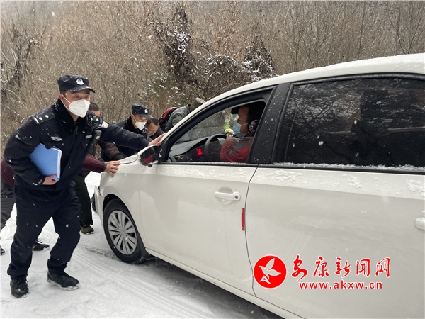 民警在巡邏途中發(fā)現(xiàn)一輛小型轎車右側(cè)前輪掉進路邊排水溝被困,經(jīng)了解,由于該路段積雪較厚、道路較窄,加上該車駕駛員不熟悉路況,車輛未戴防滑鏈,一不小心便將車開進路邊排水溝,導(dǎo)致車輛被困,所幸車上人員均未受傷。因事發(fā)路段來處于半坡,道路積雪較厚,民警立即設(shè)立警示牌,進行交通疏導(dǎo),維護現(xiàn)場秩序,提醒過往車輛注意行車安全。