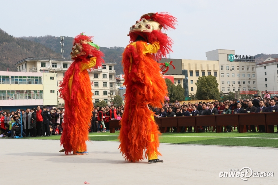平利縣西河鎮新時代宣傳隊表演的傳統民俗文化節目《舞獅表演》。 向勝忠 攝