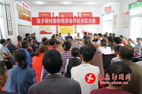 安康新聞網訊(通訊員 吳明林)9月6日,三陽鎮蒿子壩村舉行了村集體經濟組織分紅儀式。在縣、鎮“三變”產業辦及蒿子壩村工作人員的共同見證下,合作社為92戶貧困戶頒發了股權證書,并進行了首次分紅,現場分發紅利資金27600元。