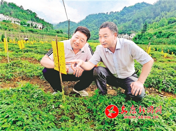 農(nóng)技專(zhuān)家送科技服務(wù)到田間地頭。