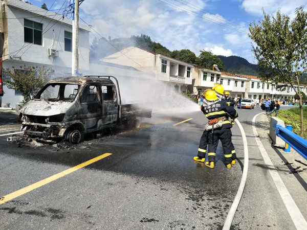 安康新聞網訊(通訊員 蘇照平)9月28日13時26分,平利消防中隊接到指揮中心派警稱:平利縣廣佛鎮往鎮坪路上一輛拉有沙發的貨車著火,接警后,中隊出動一輛水罐消……