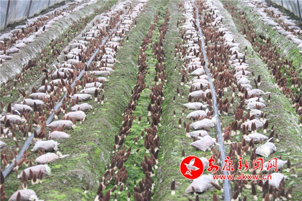 3月7日,遠近聞名的“菌菇娘”李萍帶著群眾正在大棚里忙著采收羊肚菌。今年是李萍家采摘收獲羊肚菌的第五個年頭了,目前羊肚菌已經發展大棚種植面積10余畝。“一斤鮮菌,當前能賣到100元左右。大約七到八斤鮮菌能晾曬烘干成一斤干貨。”李萍一邊采收,一邊介紹說:“羊肚菌是高端食用菌,不僅細嫩鮮美,還富含蛋白質、維生素、氨基酸等20多種營養元素,加上我們這邊地處富硒帶,種出來的很受消費者青睞。”
