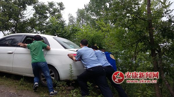 新手司機(jī)開(kāi)車緊張致車掉下路沿 警民合力將車抬起