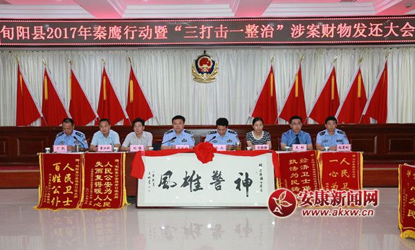 安康新聞網訊(通訊員  祝康 )7月27日,旬陽縣公安局舉行了2017秦鷹行動暨“三打擊一整治”專項斗爭涉案財物發(fā)還大會。該縣副縣長張成功出席大會,親手將該局在專項斗爭期間,追繳的總價值103余萬元涉案錢款交到受害群眾手中。R5h安康新聞網