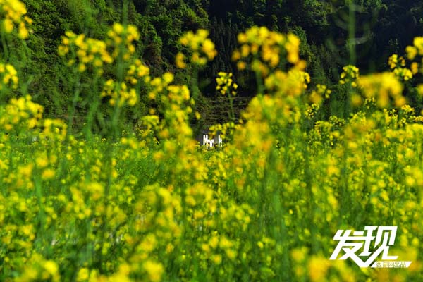 在油菜花中忽明忽暗的特色民居,展現了人與田的完美結合。