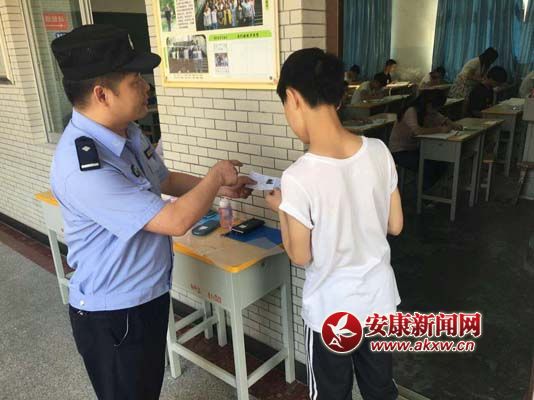 安康新聞網訊(通訊員 宋章蘭)6月28日,中考第一天,旬陽縣公安局組織民警在旬陽中學考點執勤。臨開考前,在考場外執勤的交警大隊民警將一張準考證交到考場內執……