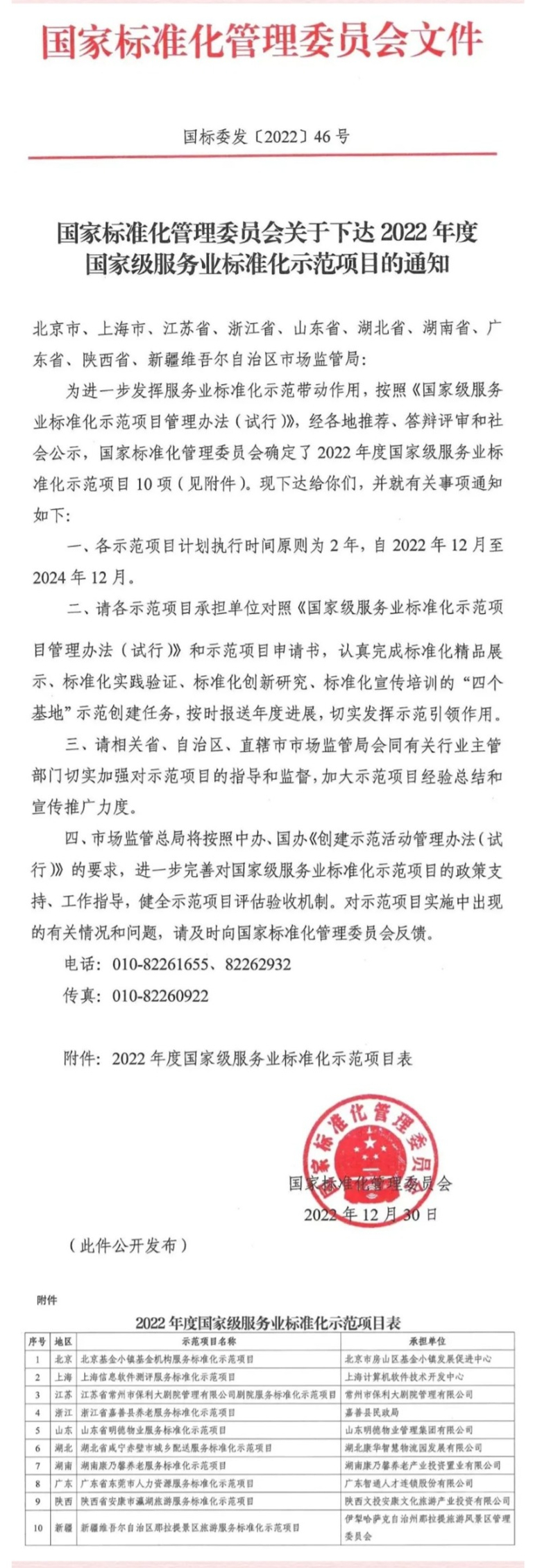 2022年12月30日,國家標準化管理委員會下達全國十個國家級服務業標準化示范項目,“陜西省安康市瀛湖旅游標準化示范項目”,經過資審、文審、選拔、答辯、公示等程序,從全國一百余家單位中脫穎而出、光榮上榜,成為陜西省第一個國家級旅游標準化示范項目。nNt安康新聞網