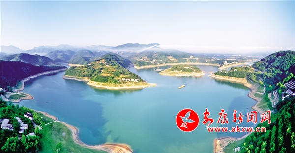 湖抱山,山擁湖,從天柱山上鳥瞰,晨看日出,霞光萬道,暮觀日落,湖光瀲滟,尤其是雨后放晴觀云海,輕煙薄霧,縹緲迷離,搖曳于峰之巔,彌漫在宇之殿,疑是凡人撞入九霄。水縹緲無垠,湖光鏡面,山綿延有致,翡翠如黛,宛如綠寶石鑲嵌。8Xc安康新聞網