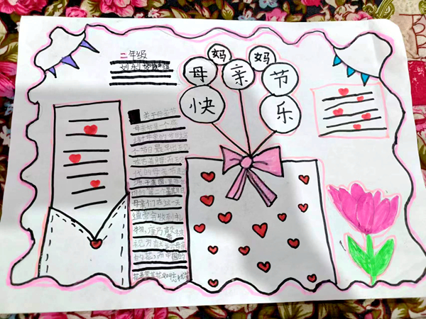 活動中,教師們依據小學生的身心特點和認知水平,因地、因實的設計了多種形式的活動教育和引導學生感謝母親、感恩母愛。在美術老師的指導和幫助下,學生們運用畫筆將自己對母親的愛呈現在紙上、用相得益彰的圖文表達了對母親的感恩;在《思政課》老師啟發下,學生們在5月14日(母親節)當日,為母親洗腳、用自己稚嫩的雙手做實際行動表達了自己對母親的感恩;主題班會上,班主任老師還為學生講解了多個“孝親敬長”典故、案例。