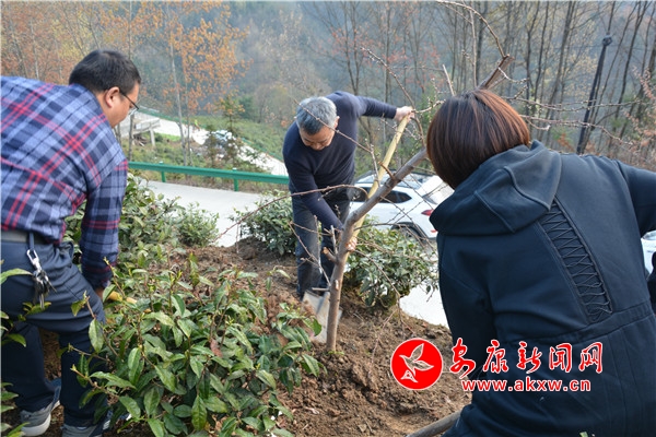植樹造林,功在當下,利在千秋。該局黨員干部分工協作,干勁十足,拿起鐵鍬、鋤頭相互配合,有的揮鍬鏟土、有的扶樹填土、澆水,忙得不亦樂乎,整個植樹活動現場一片熱火朝天的勞動景象。經過緊張有序的勞動,從外地引進的30余株桃樹幼苗在地塊“安家落戶”,在牛年新春奏響了綠色的希望。