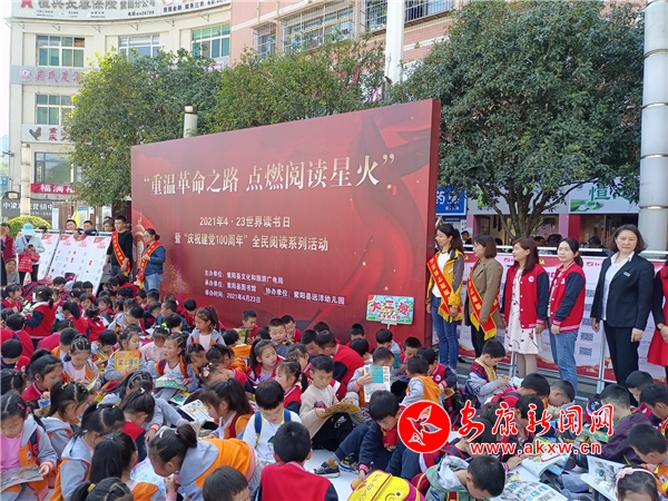 紫陽縣文旅廣電局、縣圖書館、新華書店紫陽分公司舉行“重溫革命之路·點燃閱讀星火”慶祝建黨100周年閱讀推廣活動,200余名幼兒參加了閱讀分享活動,并提供200余本黨史主題圖書和50本電子圖書供市民免費閱讀。