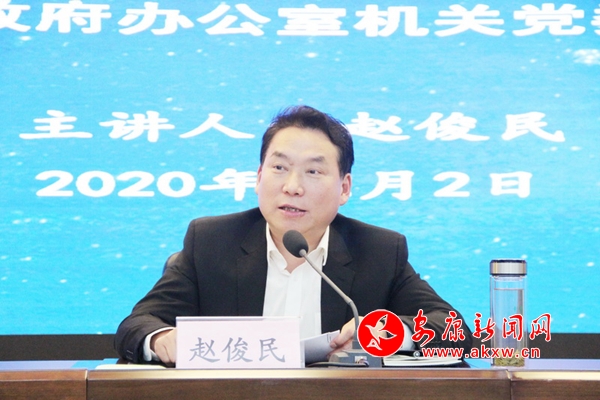 趙俊民為市政府辦公室機(jī)關(guān)黨委講黨課