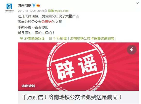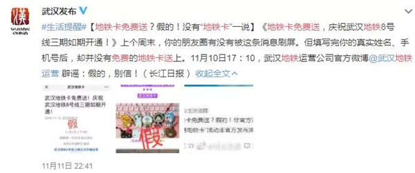 限量版西安地鐵卡免費送?謠言!很可能是騙子的詭計!