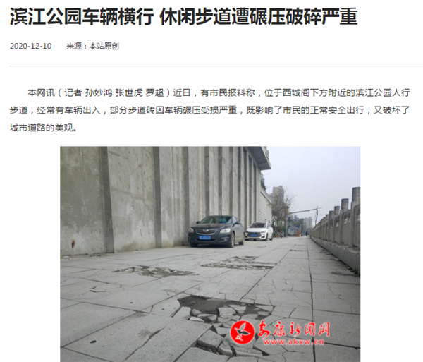 安康新聞網積極履行媒體輿論監督職能,開設有“曝光臺”欄目,主要刊發市紀委通報的典型問題。2020年,聚焦民生問題,刊發了《出門停車難,回家車位貴——安康中心城區物業小區停車問題調查》《“限塑令”下,小小塑料袋緣何依然“橫行”?》《健康就餐:我市推行“分餐制”進展調查》《電動車充電,何時才能不“飛線”?》等一批原創新聞,反映群眾呼聲,積極推進問題解決,體現地方黨媒的責任與擔當。