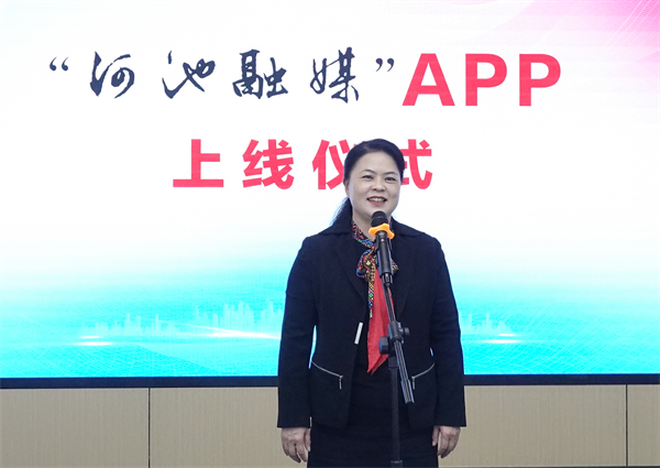 △ 市委常委、宣傳部部長孔獻(xiàn)玲宣布“河池融媒”APP正式上線。