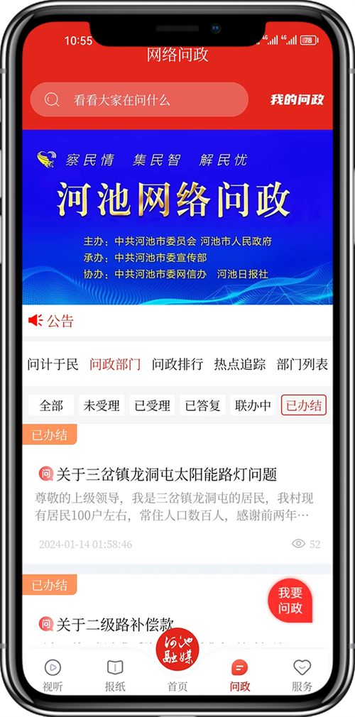 “政務(wù)+服務(wù)”進(jìn)一步優(yōu)化升級,提供網(wǎng)絡(luò)問政、報料投稿、生活繳費、健康驛站等政務(wù)民生服務(wù),更好滿足群眾辦事需求。