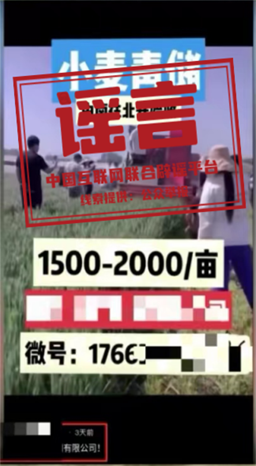 詳情:近日,有網絡自媒體發布多則信息,稱“收割未成熟小麥作青貯飼料,一畝地收入可達到1500元”,引發關注。對此,農業農村部相關司局負責人表示,網傳帖文中基本沒有具體時間、地點等信息,通過對圖片、視頻等進行溯源查找,并組織地方與發帖人核實,有的是舊圖新發、有的是將其他作物張冠李戴,還有的是推銷割草機具,均為不實信息。青貯飼料的主要原料一直以來都是青貯玉米,網傳的青貯小麥的飼用價值僅相當于青貯玉米的70%左右,而價錢卻要高上兩到三倍,無論從營養價值還是經濟價值來說,收割未成熟小麥用作青貯既不劃算,也不合常理。(來源:新華社客戶端)