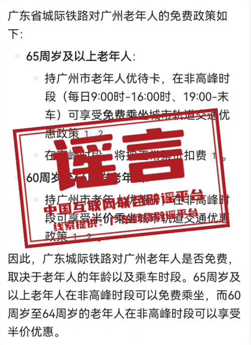 謠言:持廣州市老年人優(yōu)待卡可免費乘坐城際列車?RWD安康新聞網(wǎng)