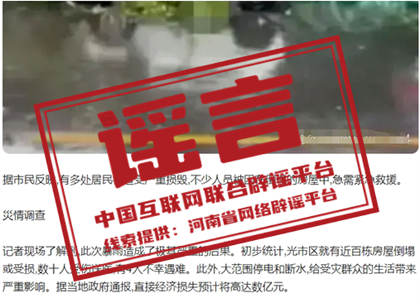真相:近日,有網民散布消息稱,“信陽市光山縣狂風暴雨致多人死亡”。經光山縣應急管理局核實,無人因災傷亡,相關信息均為謠言。請廣大網民不要輕信或隨意轉發來源不明、未經證實的信息,共同營造清朗網絡環境。(來源:河南省網絡辟謠平臺)