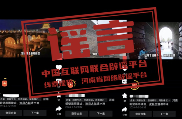 真相:近日,有網(wǎng)民在網(wǎng)絡(luò)平臺發(fā)布內(nèi)容為“河南鶴壁暴雨肆虐,浚縣古城遭水淹”的視頻信息,引發(fā)社會關(guān)注。經(jīng)核實(shí),7月5日浚縣出現(xiàn)暴雨天氣,強(qiáng)降雨期間?h古城北大街、東城門廣場等處出現(xiàn)積水情況,經(jīng)過積極排澇,雨停后路面積水很快被排空,恢復(fù)正常通行,不存在視頻中所說的“古城風(fēng)貌受損嚴(yán)重”“古城內(nèi)的部分城墻、古街巷出現(xiàn)不同程度的損毀”“古城墻出現(xiàn)了墻體開裂、坍塌等險(xiǎn)情”“古城內(nèi)的博物館、紀(jì)念館等文化設(shè)施也遭受不同程度的損失”等現(xiàn)象。該視頻多為當(dāng)?shù)嘏f聞及外地視頻嫁接拼湊。目前,?h古城秩序正常。(來源:河南省網(wǎng)絡(luò)辟謠平臺、浚縣古城保護(hù)建設(shè)服務(wù)中心)