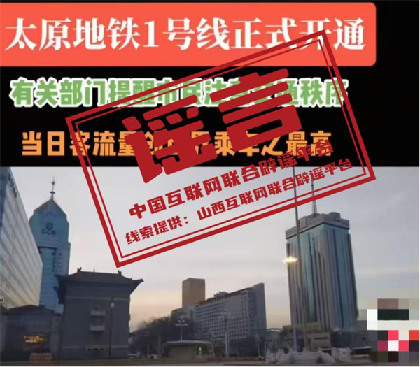真相:近日,有網(wǎng)民發(fā)布短視頻稱“太原地鐵1號線正式開通,有關(guān)部門提醒市民注意交通秩序,當(dāng)日客流量創(chuàng)世界乘車之最高”。經(jīng)與當(dāng)?shù)亟煌ú块T核實(shí),此信息內(nèi)容不實(shí)。該網(wǎng)民行為違反《網(wǎng)絡(luò)信息內(nèi)容生態(tài)治理規(guī)定》第六條第八款規(guī)定,網(wǎng)信部門已將線索移交公安部門進(jìn)一步調(diào)查處理。(來源:“山西網(wǎng)絡(luò)舉報(bào)”微信公眾號)