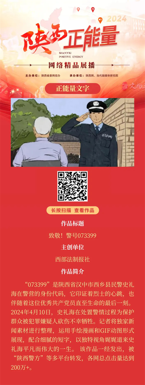 2024陜西正能量網(wǎng)絡(luò)精品展播丨正能量文字:致敬!警號073399