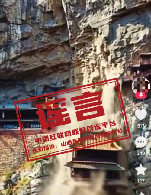 謠言:山西大同懸空寺部分建筑物坍塌?Bg8安康新聞網