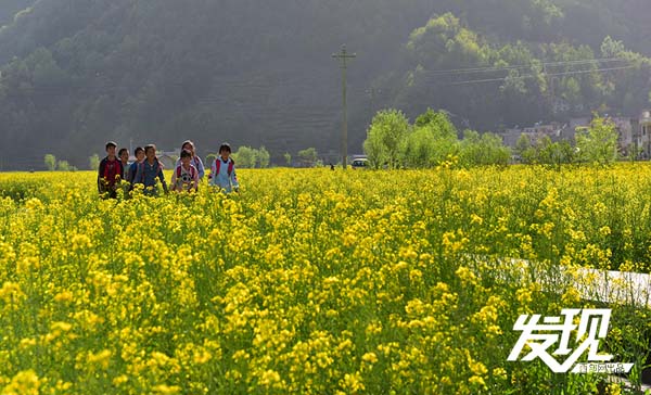 放學歸來漫步在花海中的孩子,這樣的童年無憂無慮。