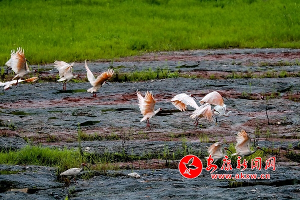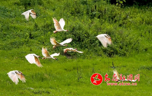 7月18日上午,22只野生朱鹮在漢陰月河草灘出現。據當地人介紹,近期就已發現十幾只朱鹮在此棲息,當日朱鹮數量有所增加。據悉,我市自然生態環境不斷得到保護后,非常適宜朱鹮的生存,近幾年來已陸續發現朱鹮來到我市漢江水域和部分縣域小河覓食。 皮勇維 攝vvc安康新聞網