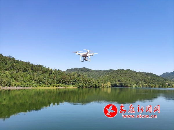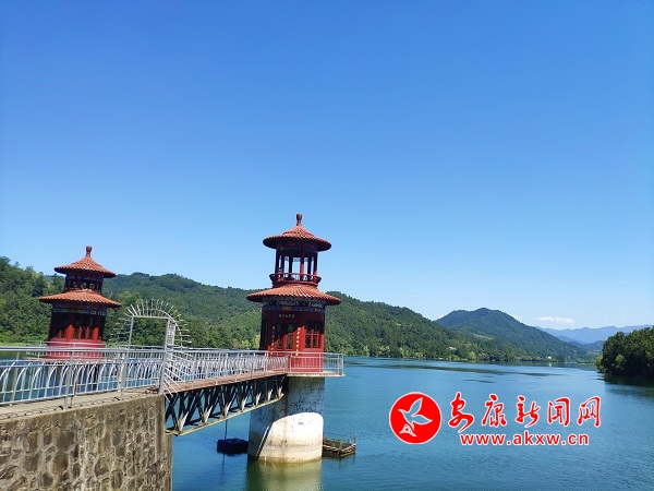 盛夏時節,行走在漢陰縣觀音河庫區,放眼望去,遠處青山如黛,抬頭藍天、白云到映湖面,水光瀲滟,白鷺伴飛,微風蕩漾,湖水漣漪,美麗的景色令人流連忘返。(攝影/儲毅)