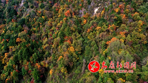 金秋十月,清風(fēng)送爽。寧陜縣境內(nèi)的平河梁自然保護區(qū)層林盡染,讓人不禁感謝大自然的饋禮,陶醉于這美景之中,一眼望去滿眼色彩斑斕,秋日山色美不勝收。(楊寧 攝)5z7安康新聞網(wǎng)