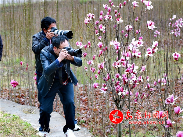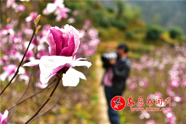近日,平利縣廣佛鎮八角廟村5000畝辛夷花絢麗綻放,游客紛至沓來,觀賞拍照。(王韜/圖文)