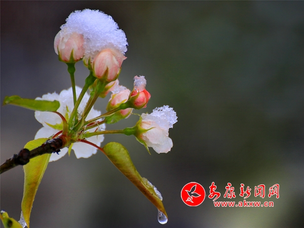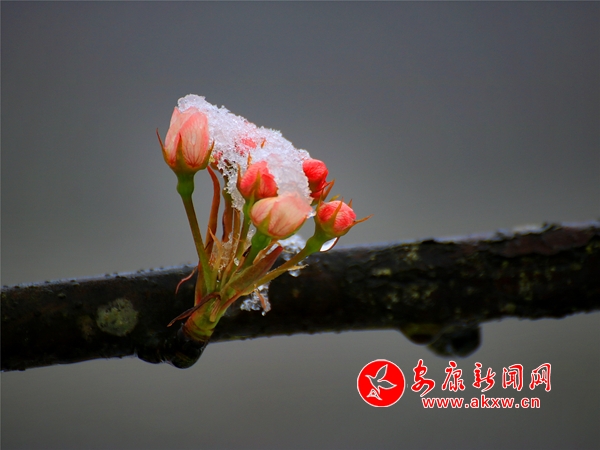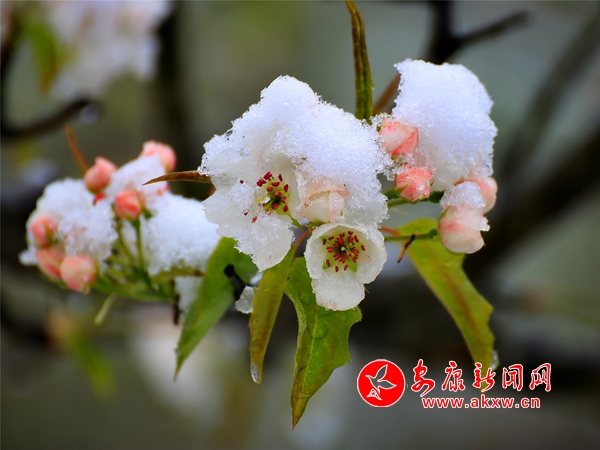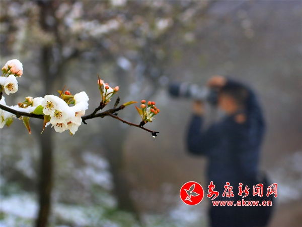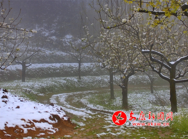 日前,一場洋洋灑灑的春雪,讓平利縣城關鎮龍頭村太平寨展現出春雪壓梨花的美景。據悉,太平寨有梨樹十余畝,與絞股藍栽植套種,年產酥梨萬余斤。(王韜 攝)