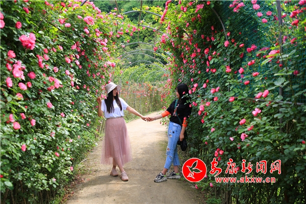 從安康城區(qū)出發(fā),沿包茂高速至流水東下,再沿庫遷路行約6公里便到達漢濱區(qū)流水鎮(zhèn)田心社區(qū)。在這里,兩百余畝玫瑰(月季)花開正艷,一幅天藍水碧花美的絢麗畫卷悠然展現(xiàn)。走進園中,猶如置身花海,微風吹來,一股股花香撲鼻而來,玫瑰、月季、薔薇等各種嬌嫩欲滴的花兒令人沉醉,一簇簇,一叢叢,妖嬈美麗。前來賞花的游人絡繹不絕,大家觀賞美景的同時,不時拿出手機在花叢中自拍、合影。(文圖/吳亞君 劉一薇 胡智賢) tAx安康新聞網(wǎng)