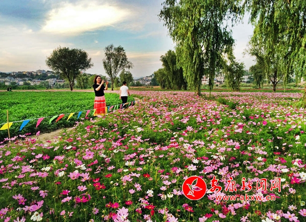 近日,位處安康東郊黃洋河畔城東新區綠地公園數百畝格桑花競相開放,如茵的草地,蕩漾的花海,每天吸引著絡繹不絕的市民前來觀賞和游玩,很快成為安康新的網紅打卡地。 (攝影 趙波)Kjr安康新聞網