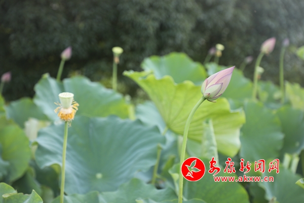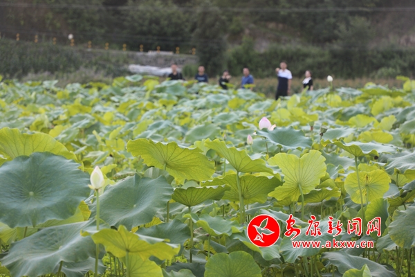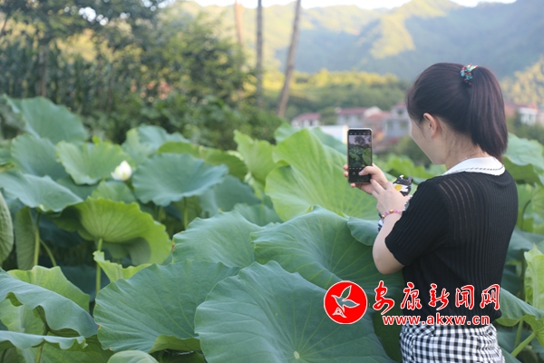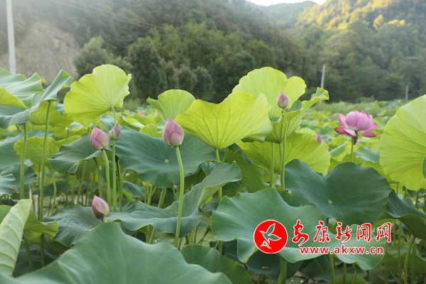 荷葉碧綠,荷花盛開。在七月驕陽的照耀下,伴隨著鳥叫和蟬鳴,漢濱區沈壩鎮花紅村的灼灼荷花如期而至,與美麗鄉村形成一道靚麗的獨特風景。(鄭時根 攝)