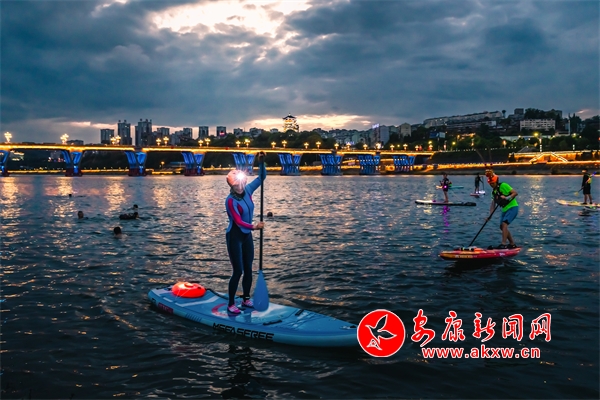 市民在安康湖玩漿板 薛勤學 攝DUB安康新聞網